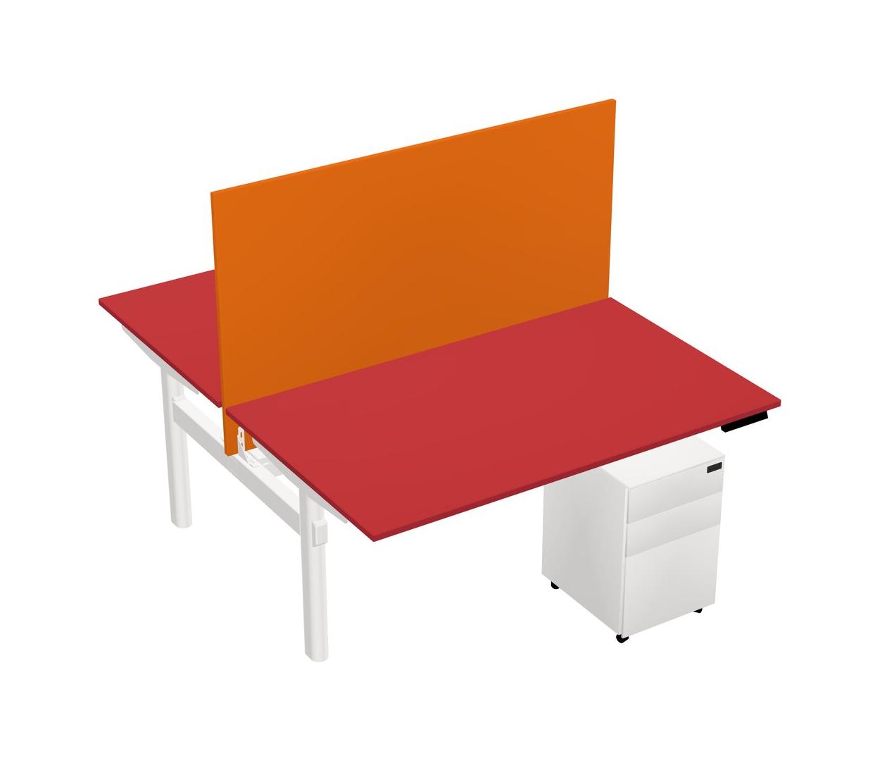 Prism Red Shared Dual Motor Electric Height Adjustable Desk With Metal Mobile Drawers And Desk Divider