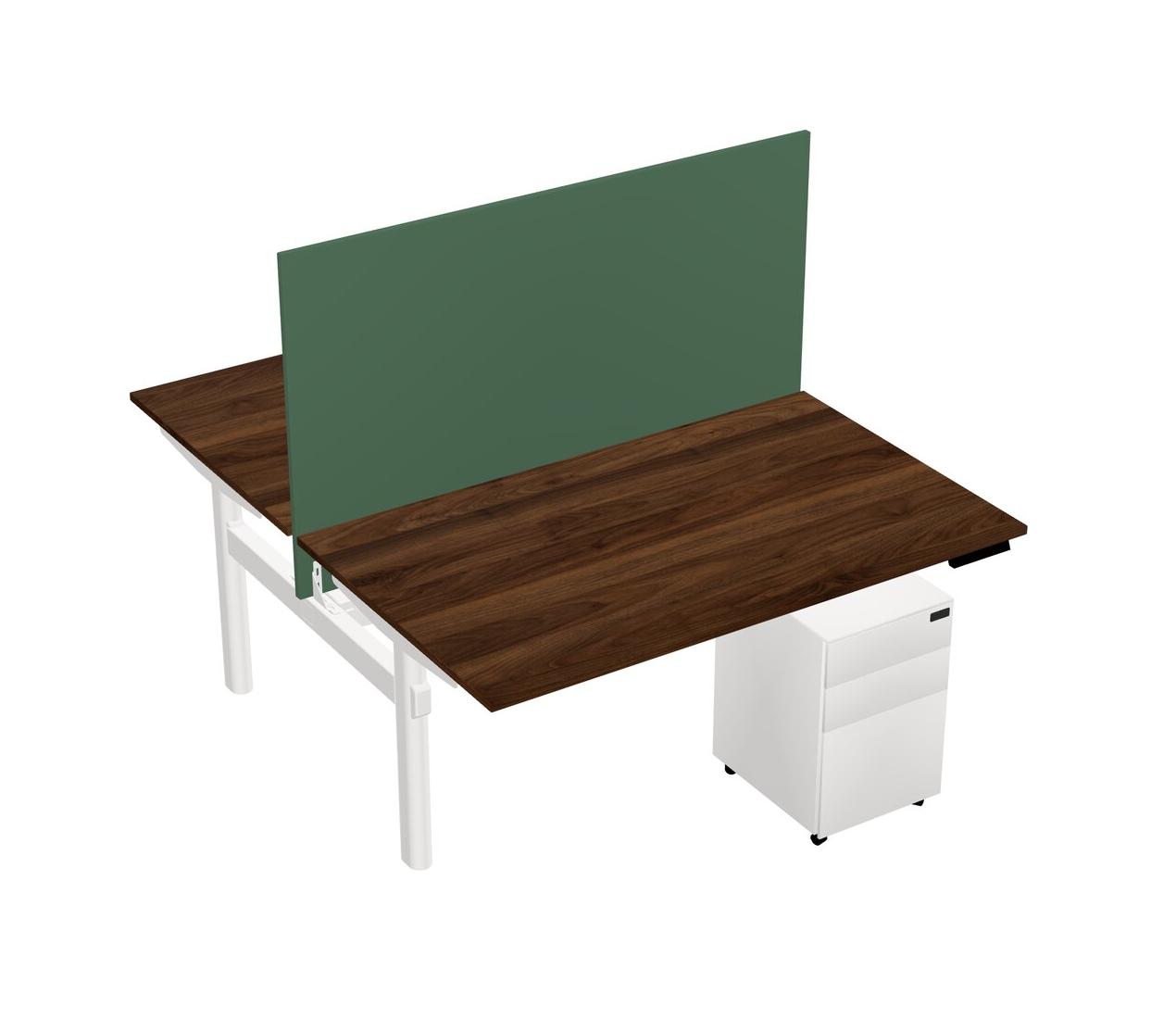 Columbia Walnut Shared Dual Motor Electric Height Adjustable Desk With Metal Mobile Drawers And Desk Divider