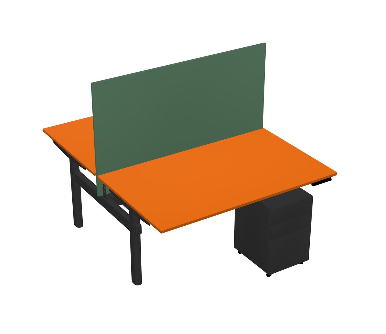 Orange Shared Dual Motor Electric Height Adjustable Desk With Metal Mobile Drawers And Desk Divider