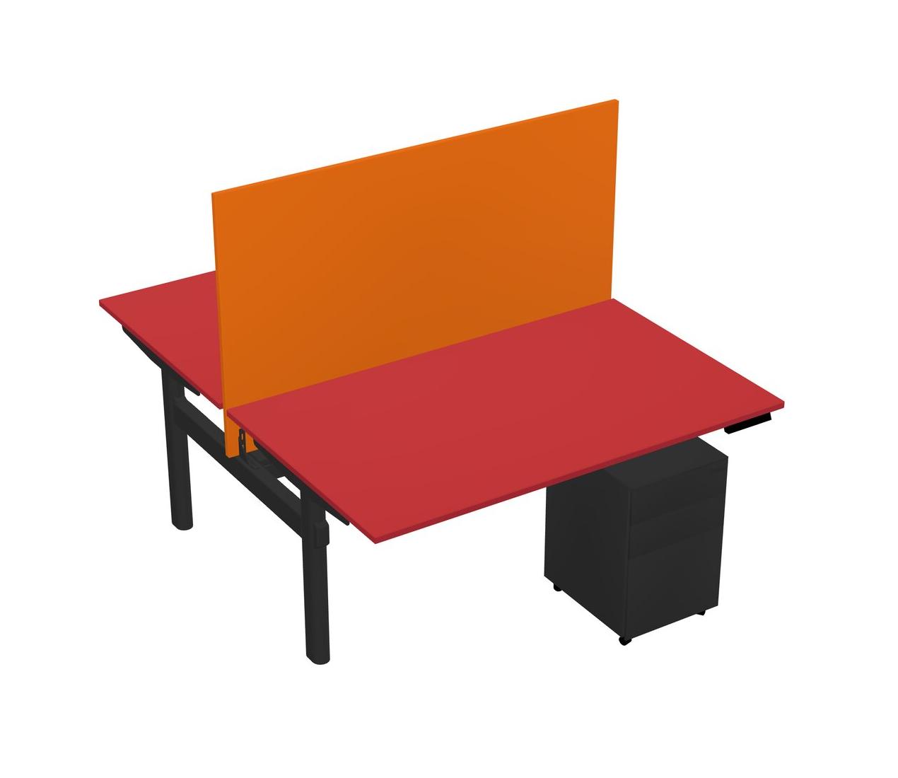 Prism Red Shared Dual Motor Electric Height Adjustable Desk With Metal Mobile Drawers And Desk Divider