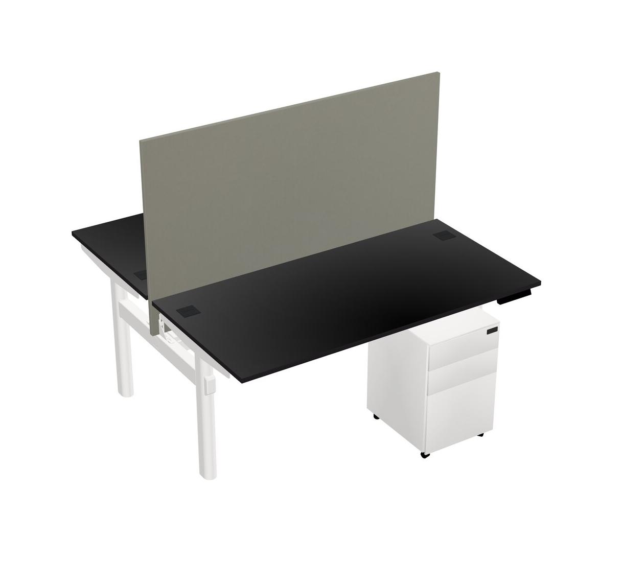 Black Shared Dual Motor Electric Height Adjustable Desk With Metal Mobile Drawers And Desk Divider