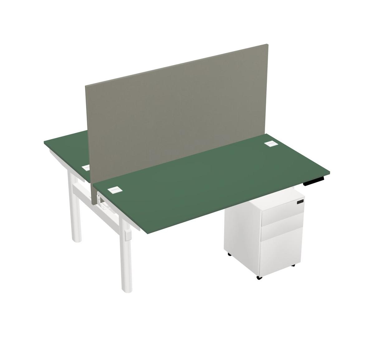 Green Shared Dual Motor Electric Height Adjustable Desk With Metal Mobile Drawers And Desk Divider