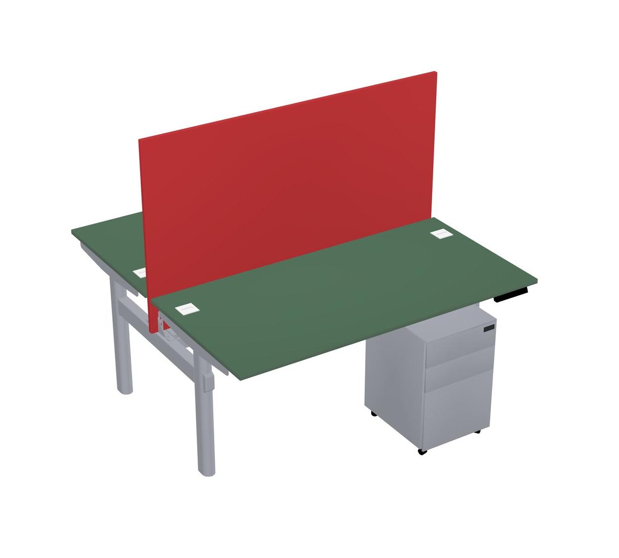 Green Shared Dual Motor Electric Height Adjustable Desk With Metal Mobile Drawers And Desk Divider