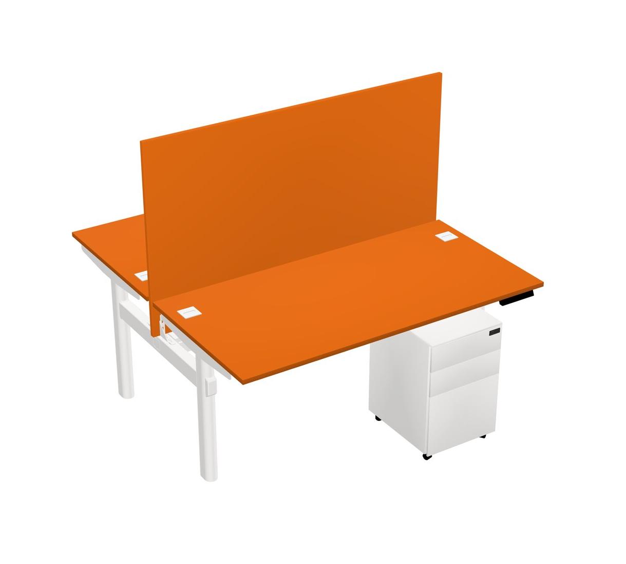 Orange Shared Dual Motor Electric Height Adjustable Desk With Metal Mobile Drawers And Desk Divider