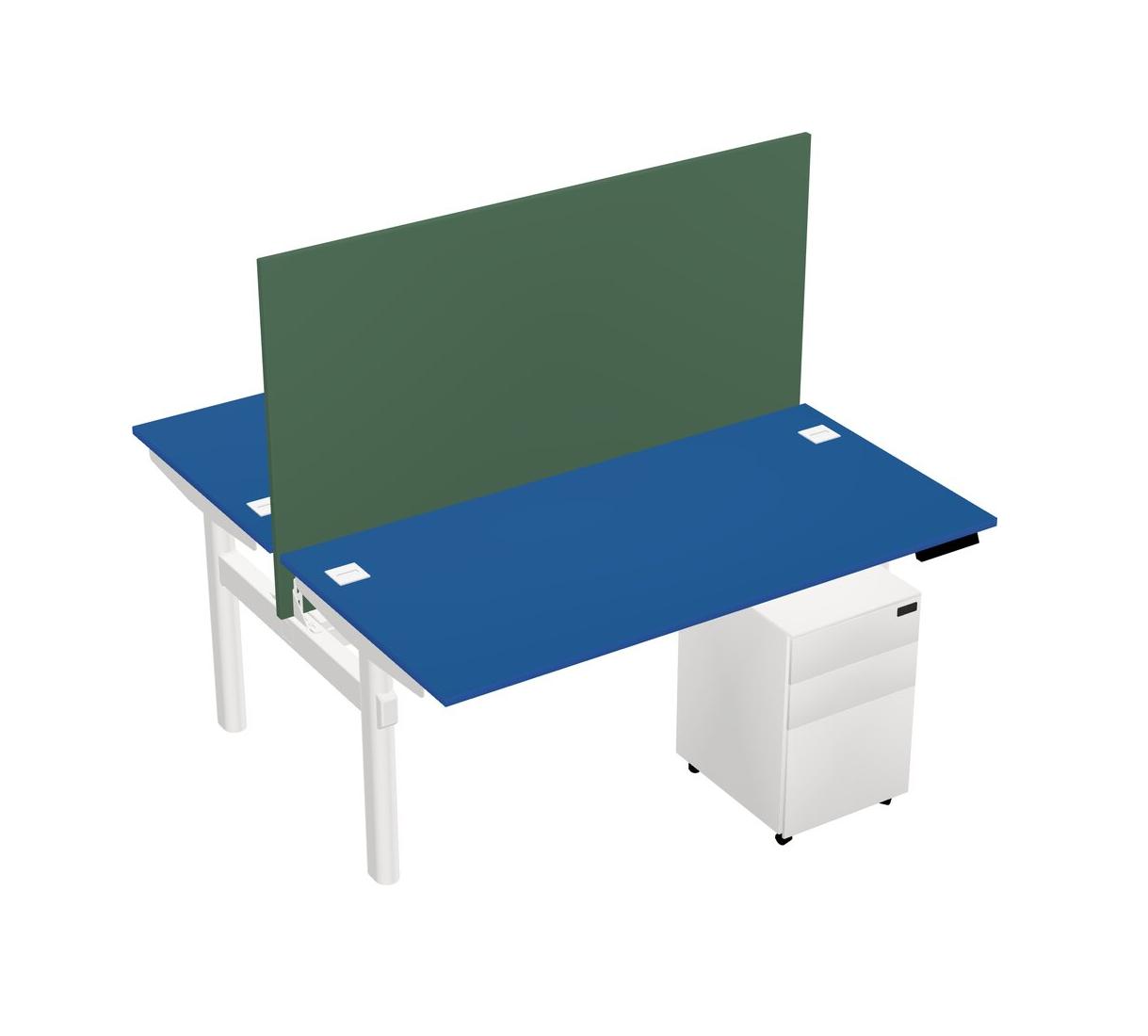 Prism Blue Shared Dual Motor Electric Height Adjustable Desk With Metal Mobile Drawers And Desk Divider