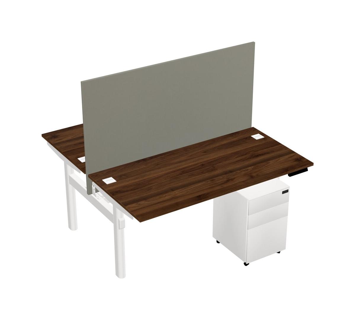 Columbia Walnut Shared Dual Motor Electric Height Adjustable Desk With Metal Mobile Drawers And Desk Divider