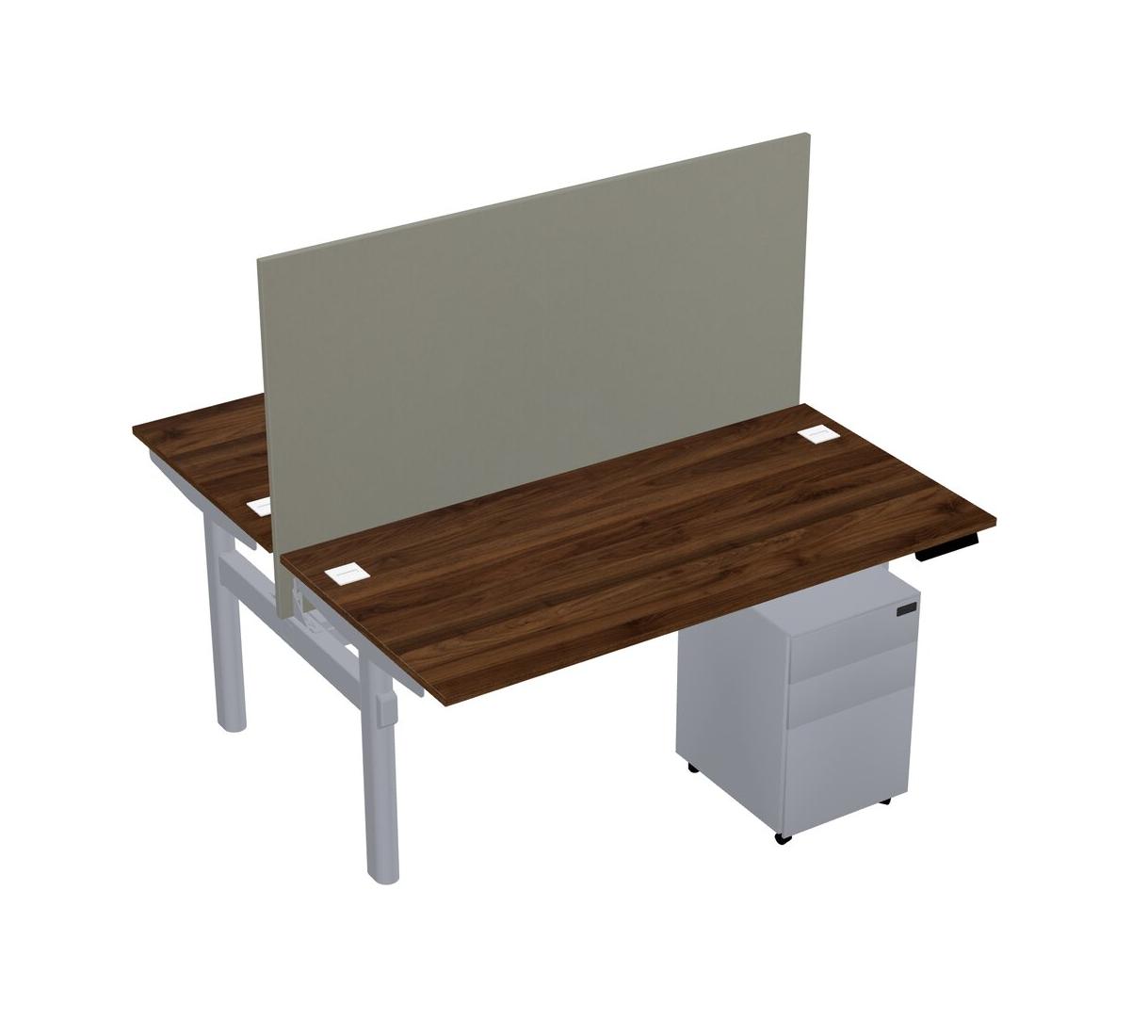 Columbia Walnut Shared Dual Motor Electric Height Adjustable Desk With Metal Mobile Drawers And Desk Divider