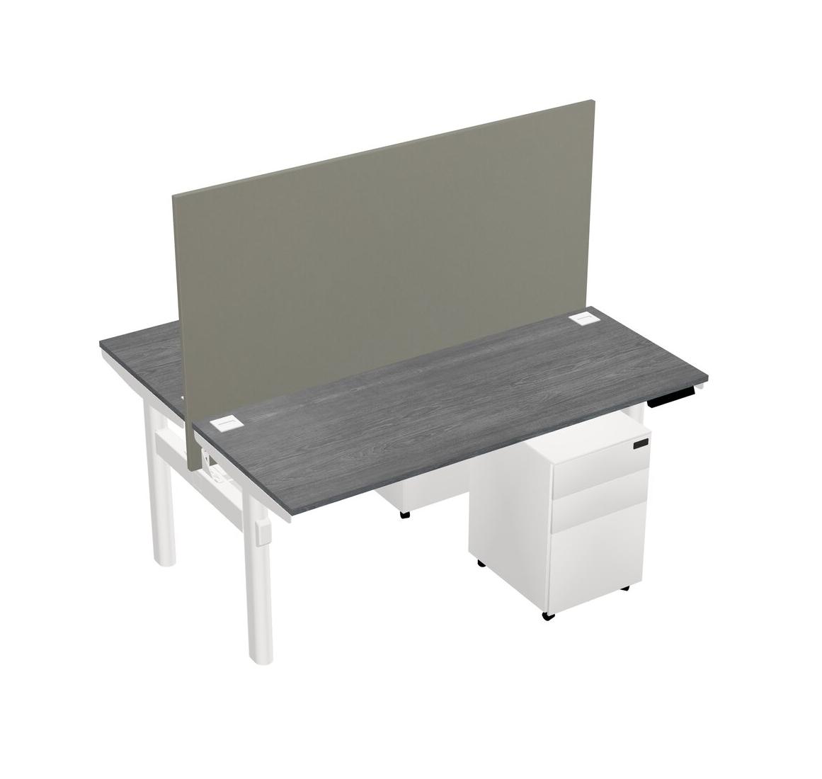 Grey Shared Dual Motor Electric Height Adjustable Desk With Metal Mobile Drawers And Desk Divider