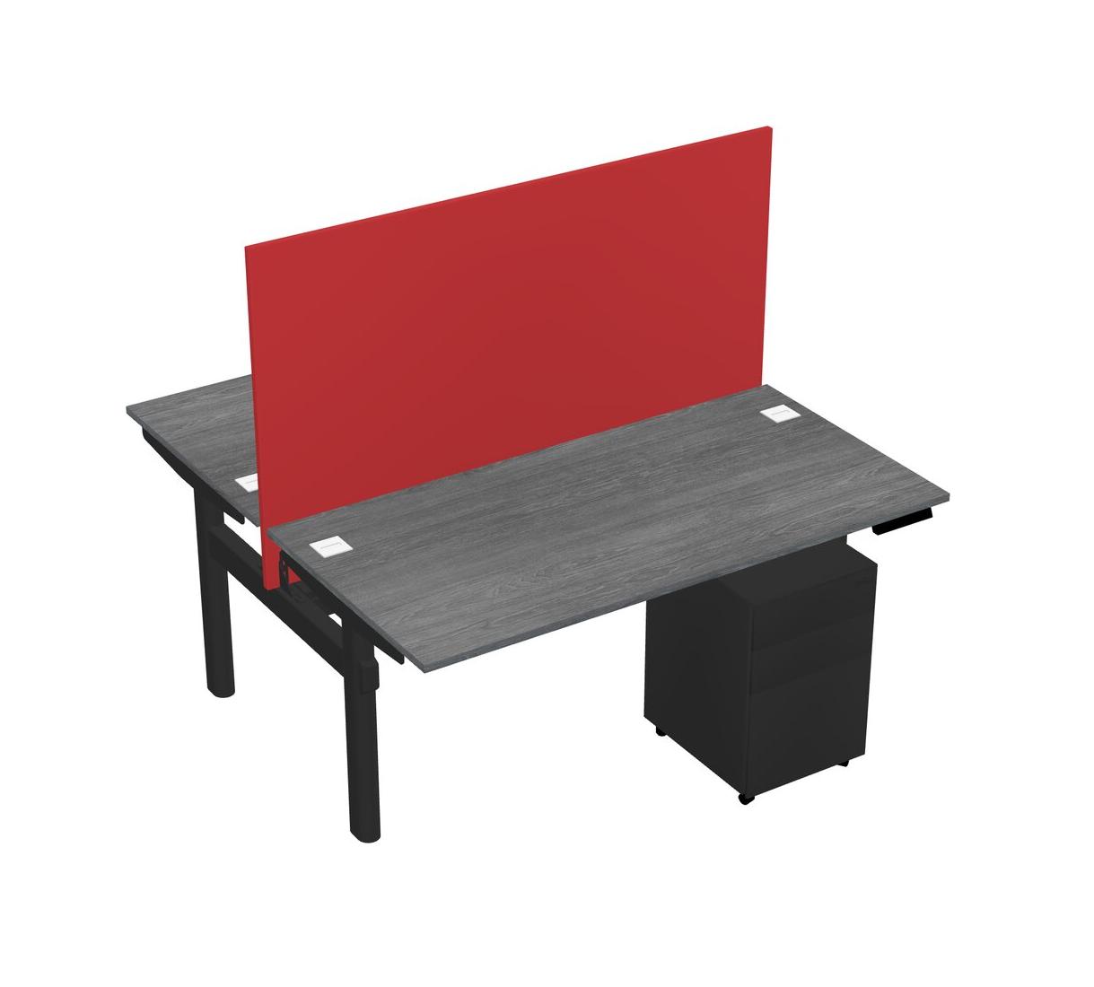 Grey Shared Dual Motor Electric Height Adjustable Desk With Metal Mobile Drawers And Desk Divider