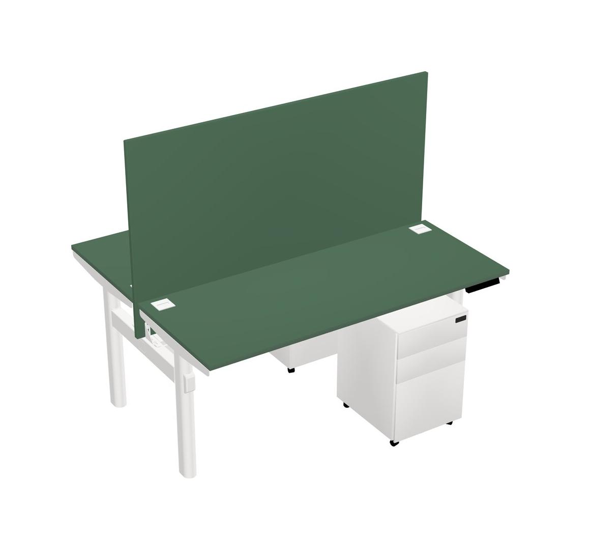 Green Shared Dual Motor Electric Height Adjustable Desk With Metal Mobile Drawers And Desk Divider
