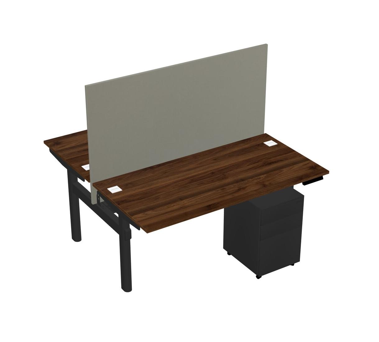 Columbia Walnut Shared Dual Motor Electric Height Adjustable Desk With Metal Mobile Drawers And Desk Divider