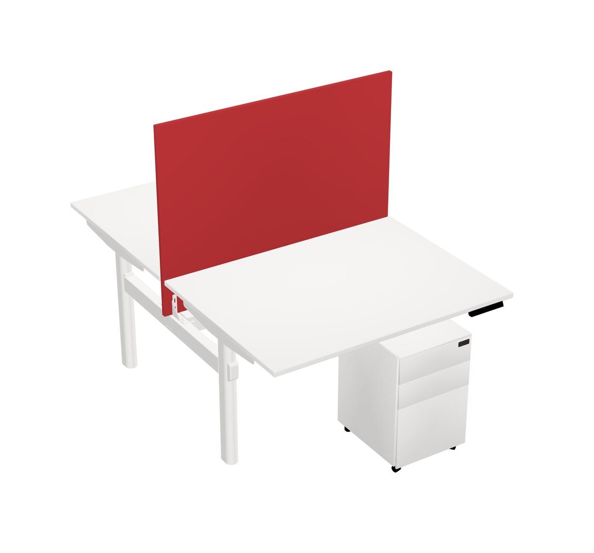 White Shared Dual Motor Electric Height Adjustable Desk With Metal Mobile Drawers And Desk Divider