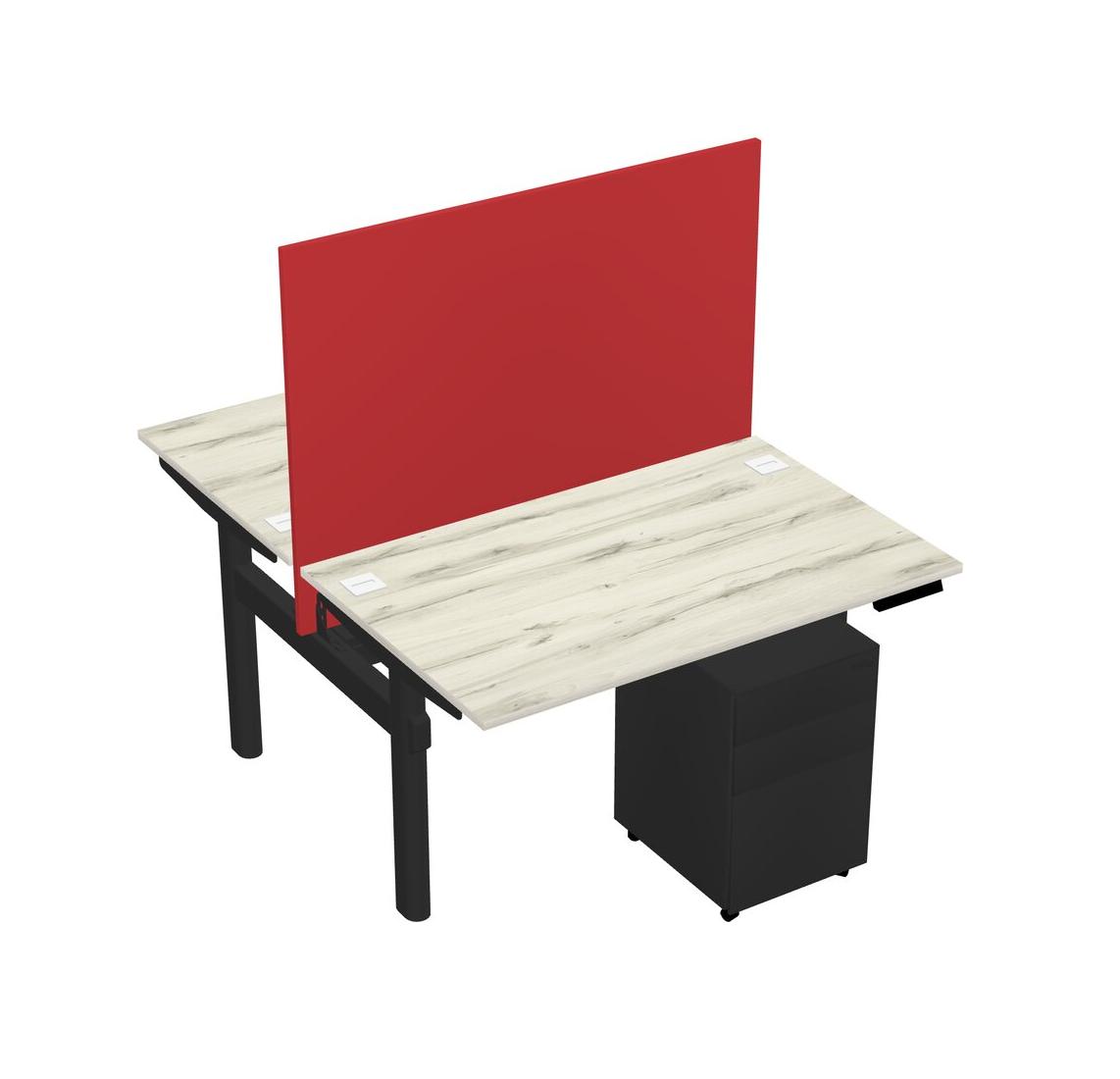Heinne Holz Shared Dual Motor Electric Height Adjustable Desk With Metal Mobile Drawers And Desk Divider