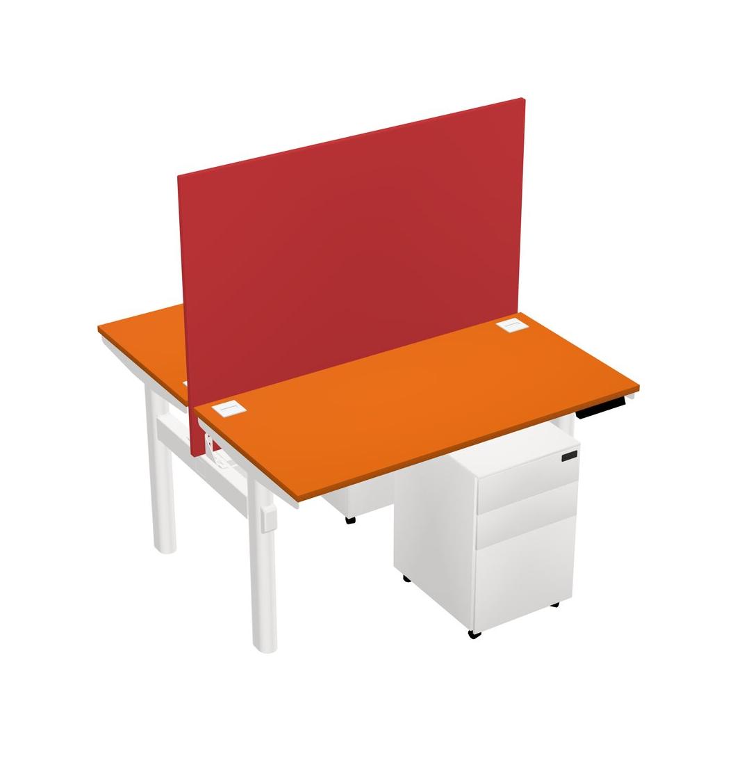 Orange Shared Dual Motor Electric Height Adjustable Desk With Metal Mobile Drawers And Desk Divider