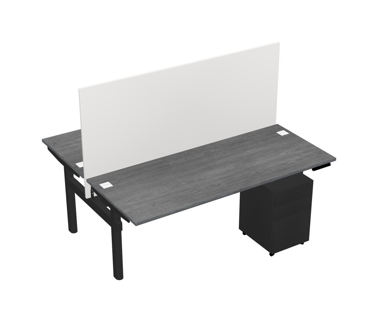 Grey Shared Dual Motor Electric Height Adjustable Desk With Metal Mobile Drawers And Desk Divider