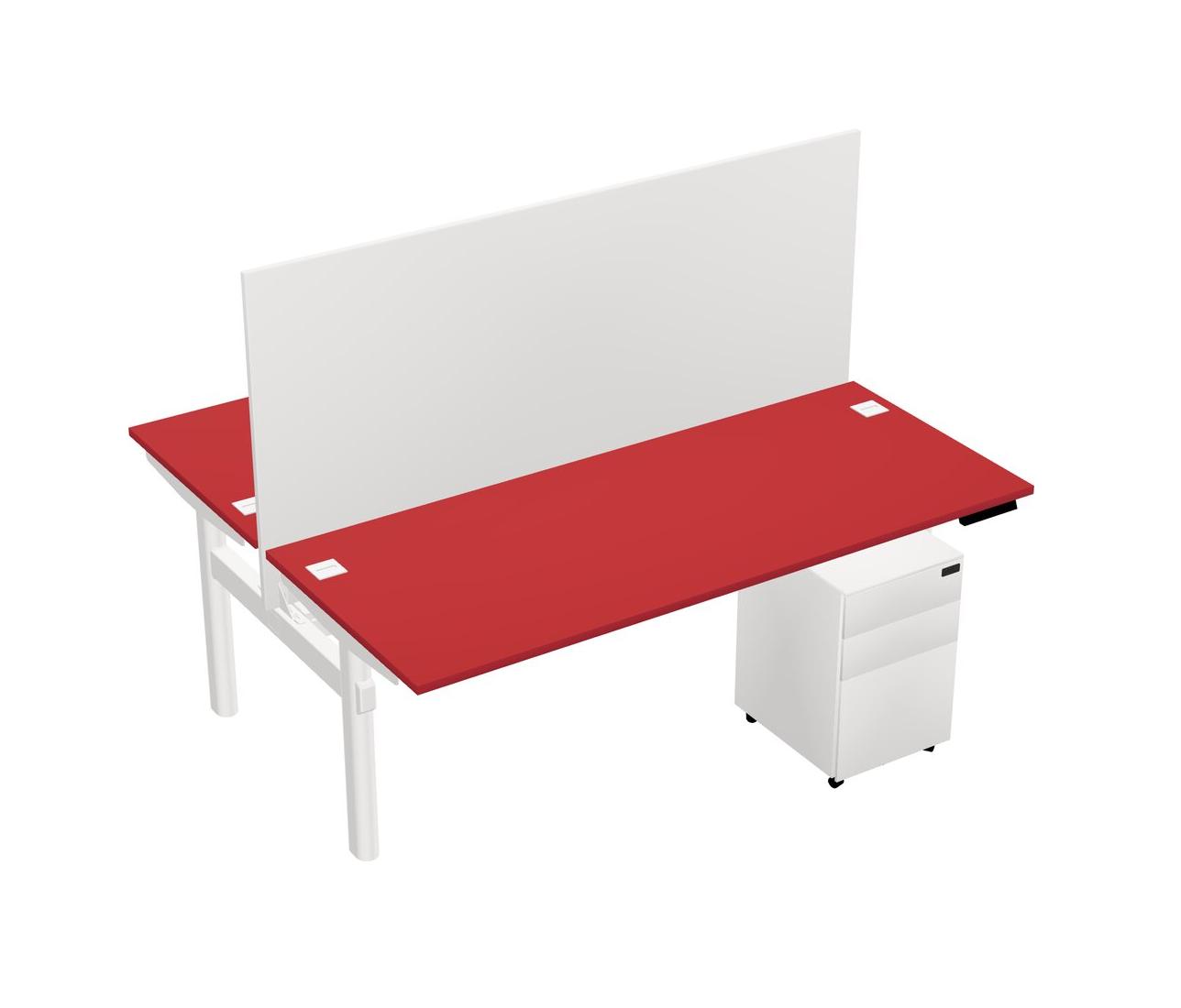 Prism Red Shared Dual Motor Electric Height Adjustable Desk With Metal Mobile Drawers And Desk Divider