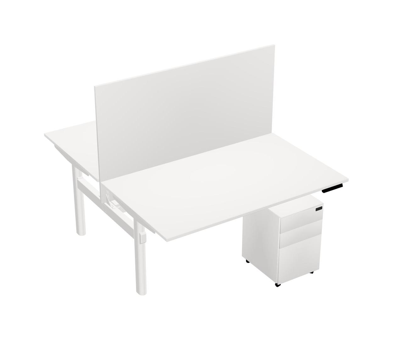 White Shared Dual Motor Electric Height Adjustable Desk With Metal Mobile Drawers And Desk Divider