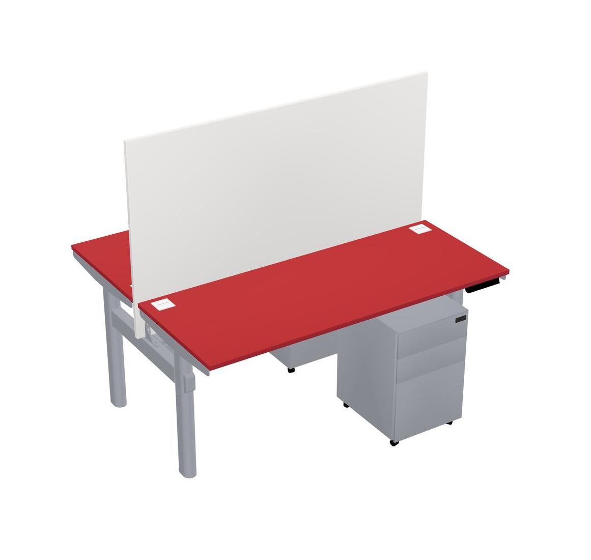 Prism Red Shared Dual Motor Electric Height Adjustable Desk With Metal Mobile Drawers And Desk Divider