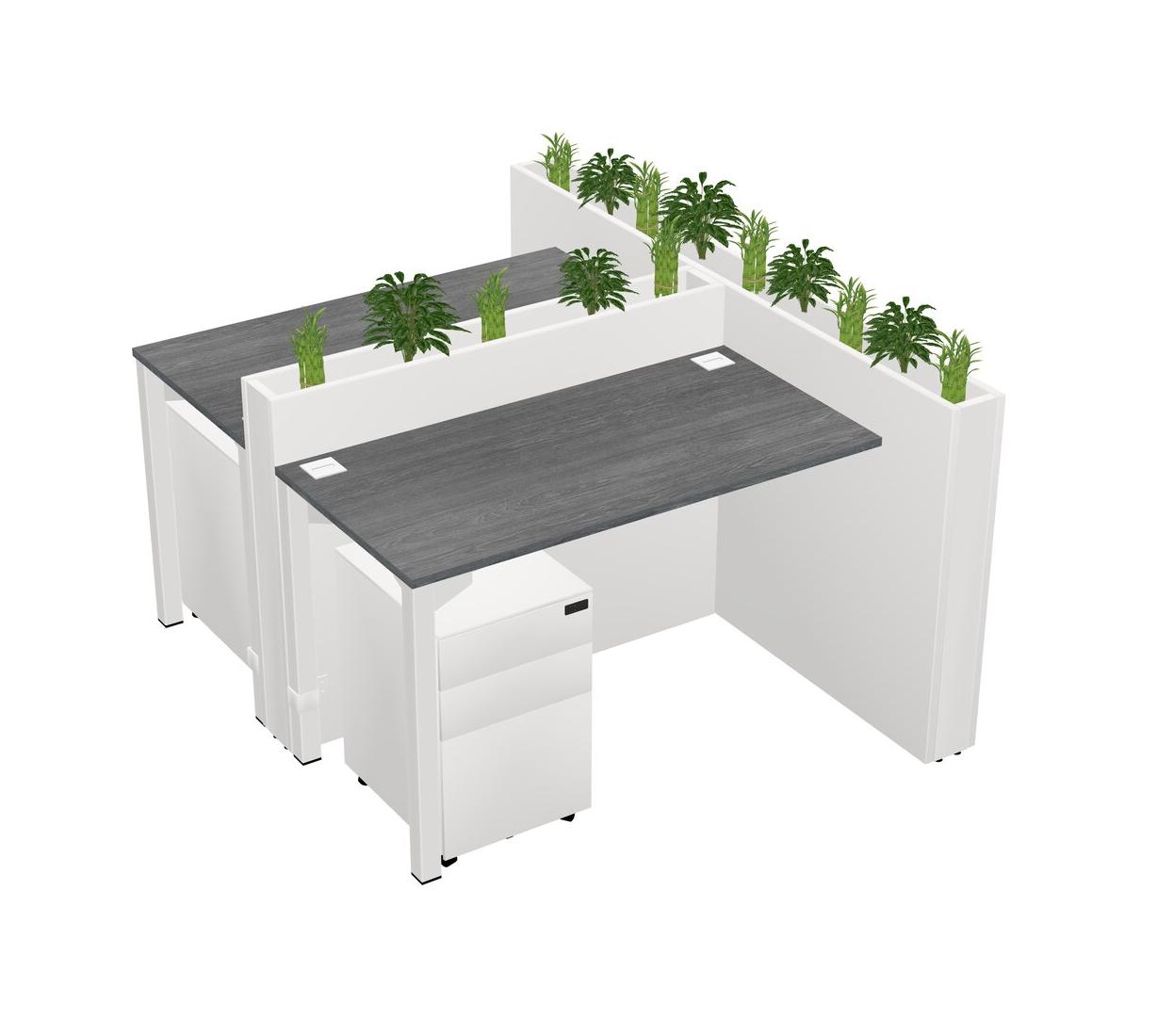 Grey Rectangular Shared Office Desk System Metal Mobile Drawers (Pots & Plants Sold Separately)