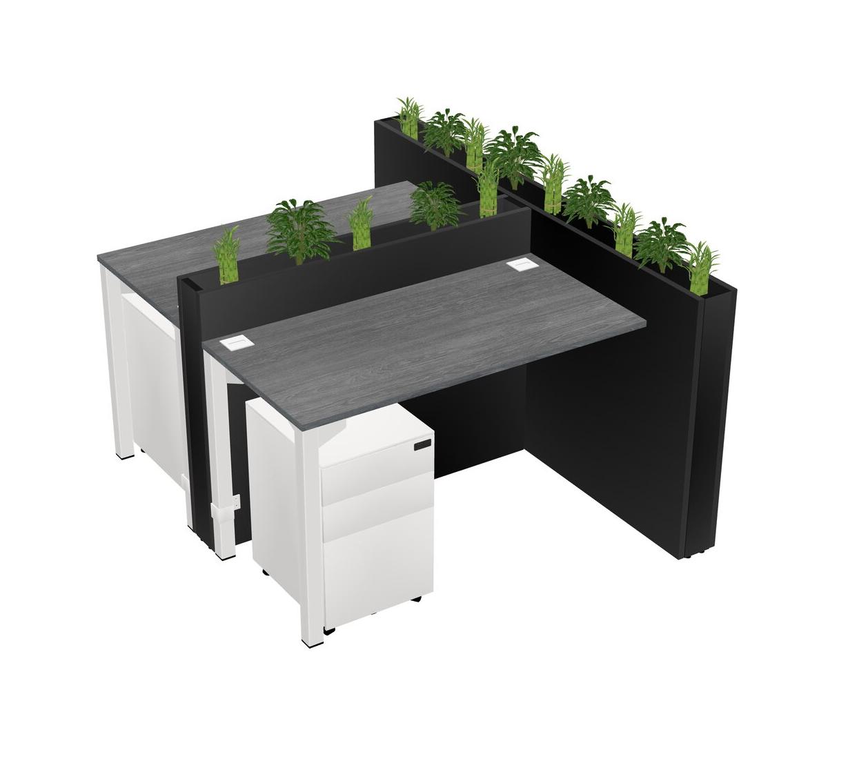 Grey Rectangular Shared Office Desk System Metal Mobile Drawers (Pots & Plants Sold Separately)