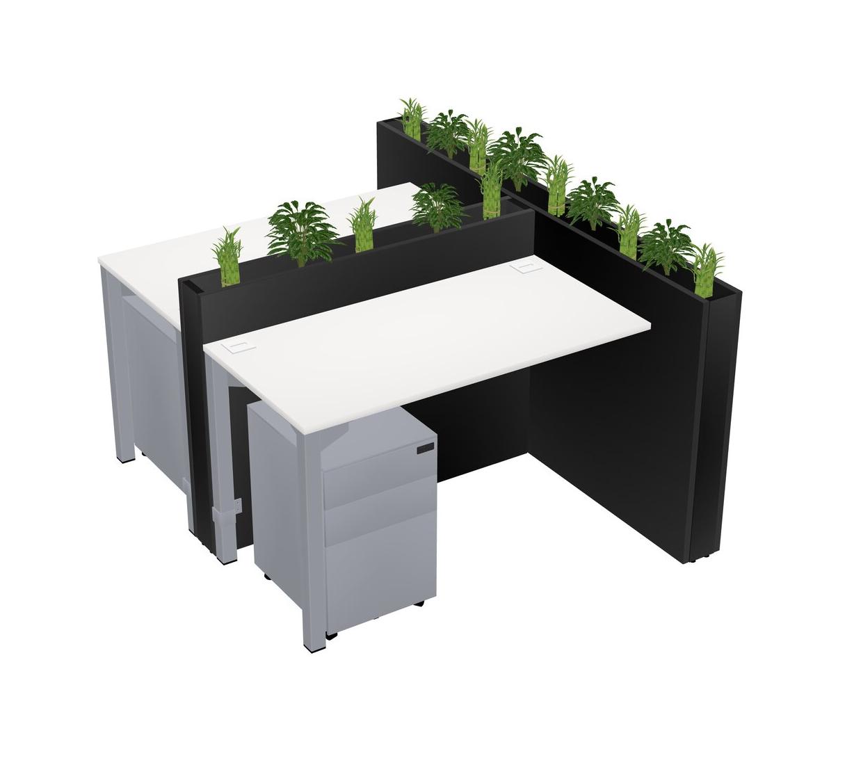 White Rectangular Shared Office Desk System Metal Mobile Drawers (Pots & Plants Sold Separately)