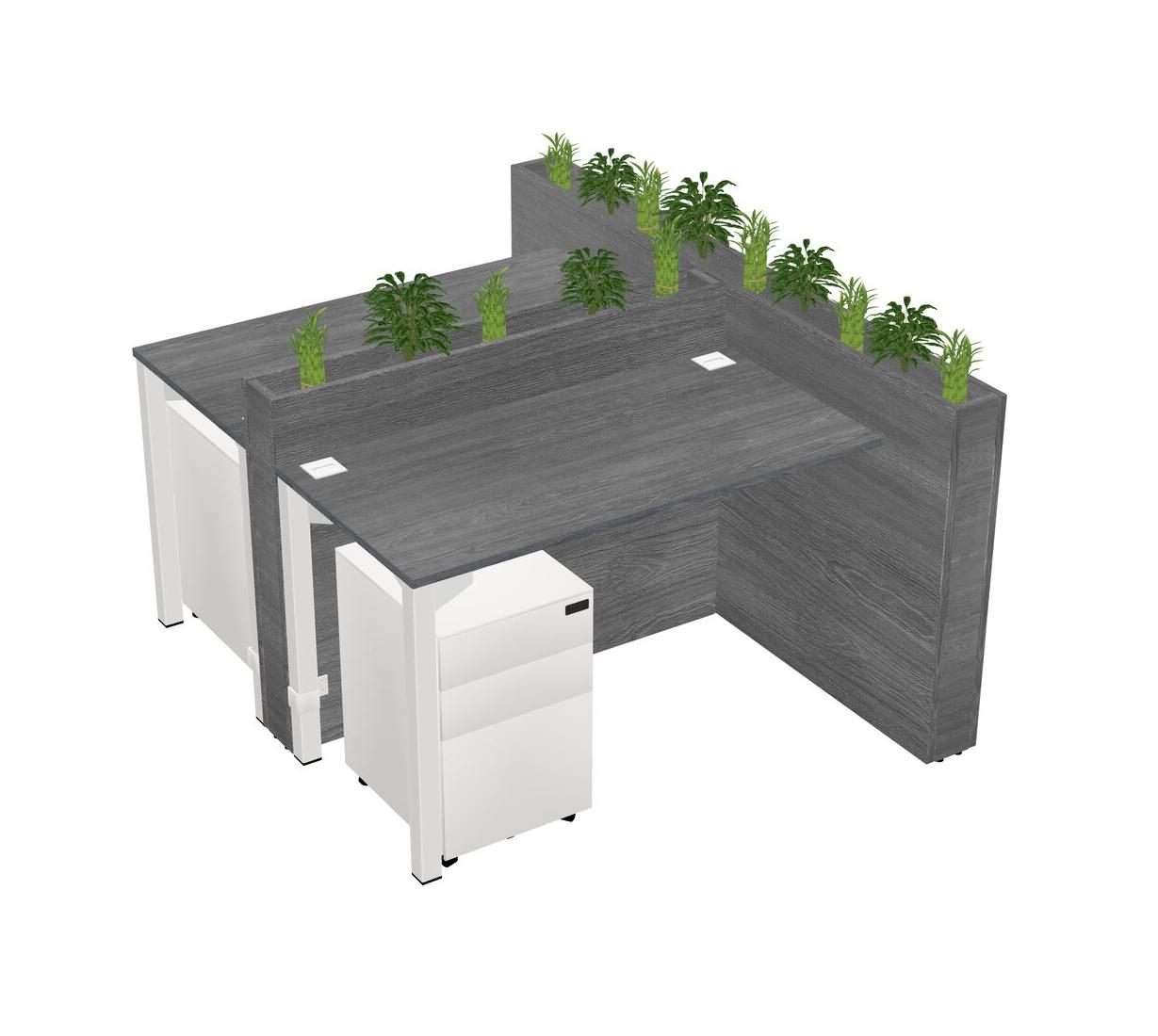 Grey Rectangular Shared Office Desk System Metal Mobile Drawers (Pots & Plants Sold Separately)