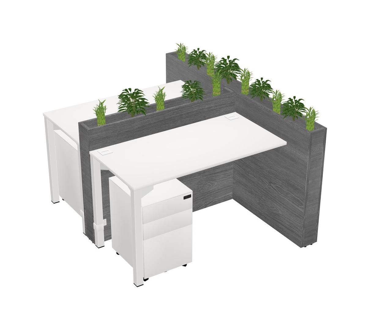 White Rectangular Shared Office Desk System Metal Mobile Drawers (Pots & Plants Sold Separately)