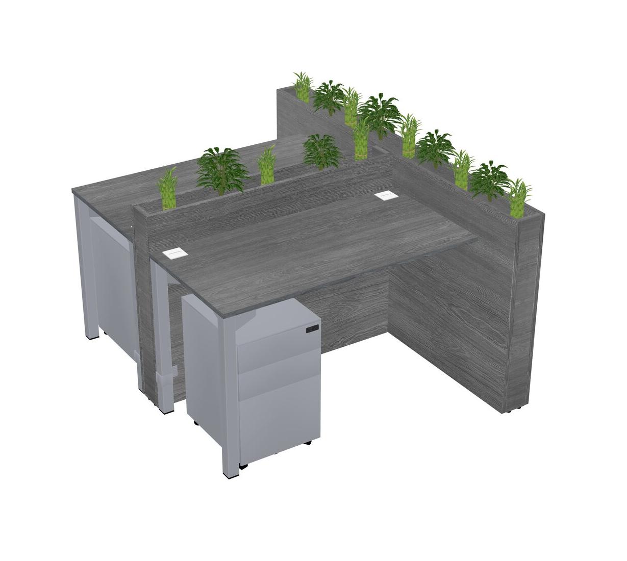 Grey Rectangular Shared Office Desk System Metal Mobile Drawers (Pots & Plants Sold Separately)