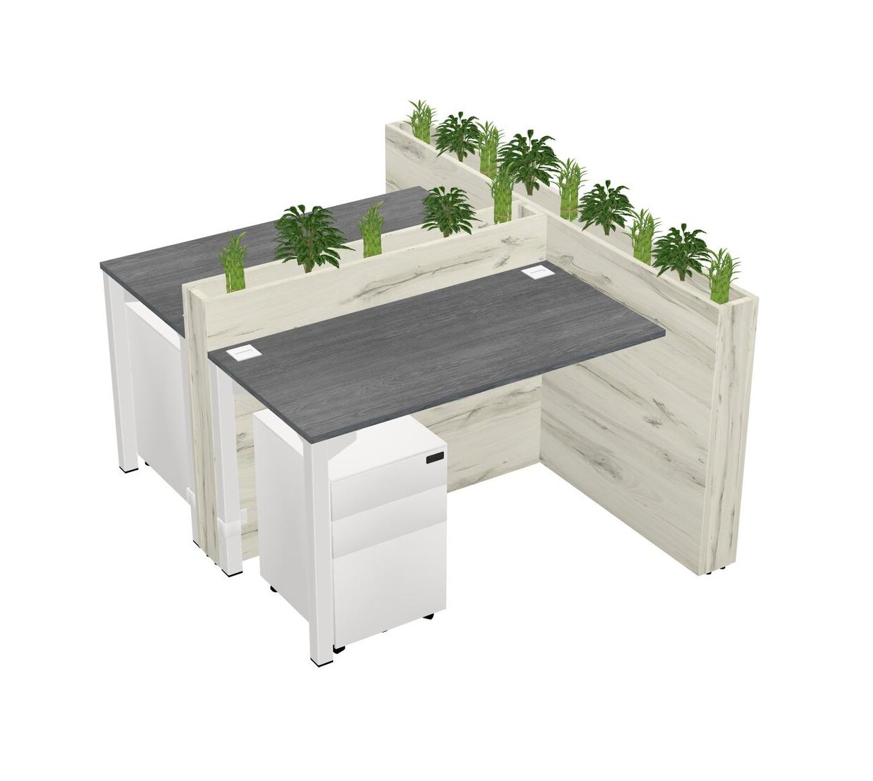Grey Rectangular Shared Office Desk System Metal Mobile Drawers (Pots & Plants Sold Separately)