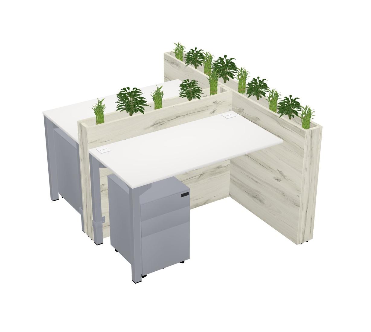 White Rectangular Shared Office Desk System Metal Mobile Drawers (Pots & Plants Sold Separately)