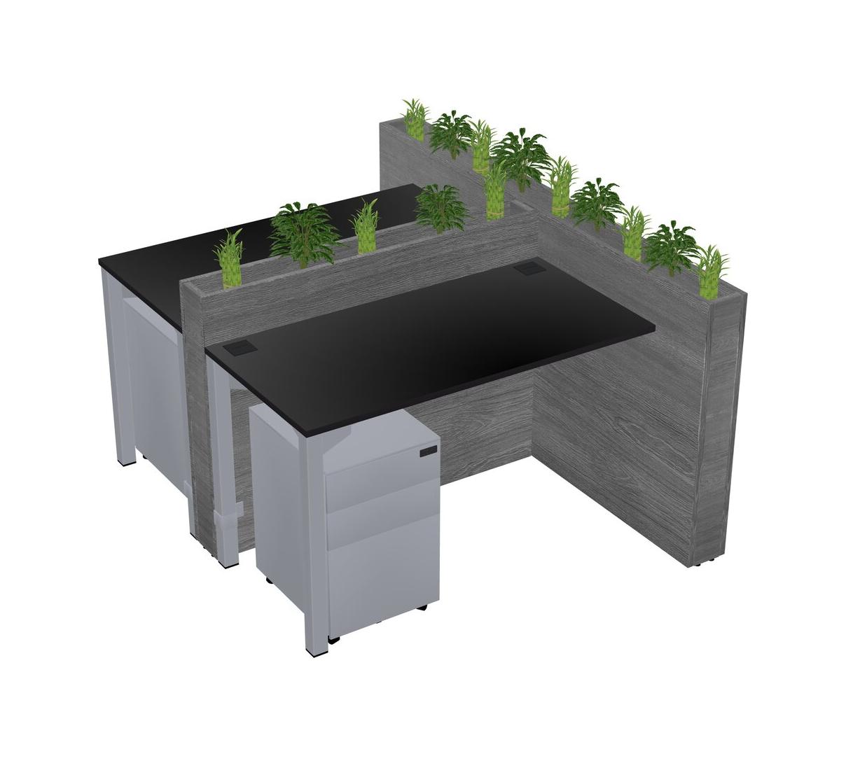 Black Rectangular Shared Office Desk System Metal Mobile Drawers (Pots & Plants Sold Separately)