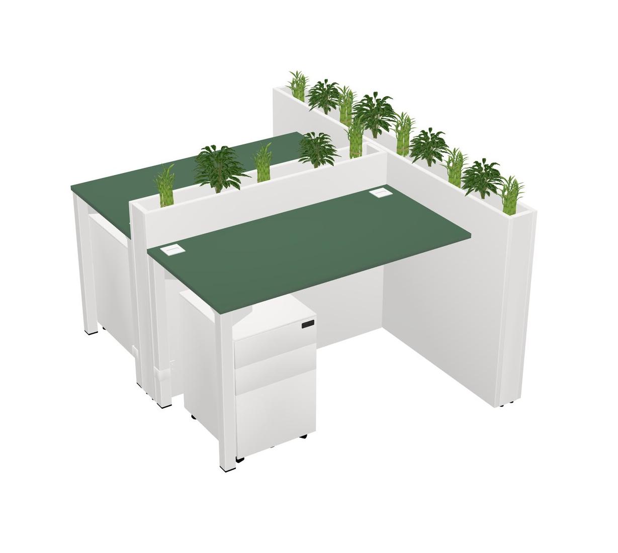 Green Rectangular Shared Office Desk System Metal Mobile Drawers (Pots & Plants Sold Separately)
