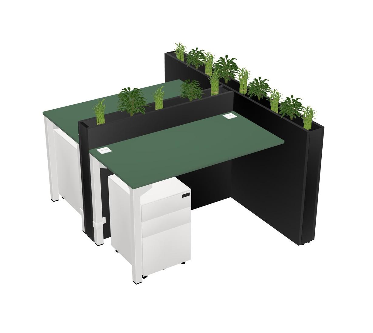 Green Rectangular Shared Office Desk System Metal Mobile Drawers (Pots & Plants Sold Separately)