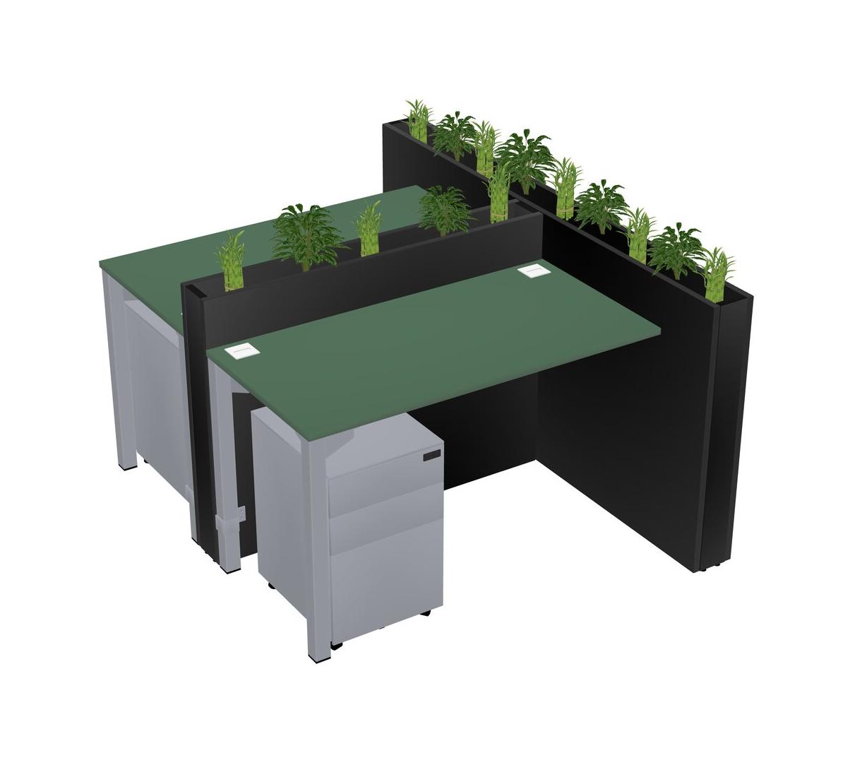 Green Rectangular Shared Office Desk System Metal Mobile Drawers (Pots & Plants Sold Separately)
