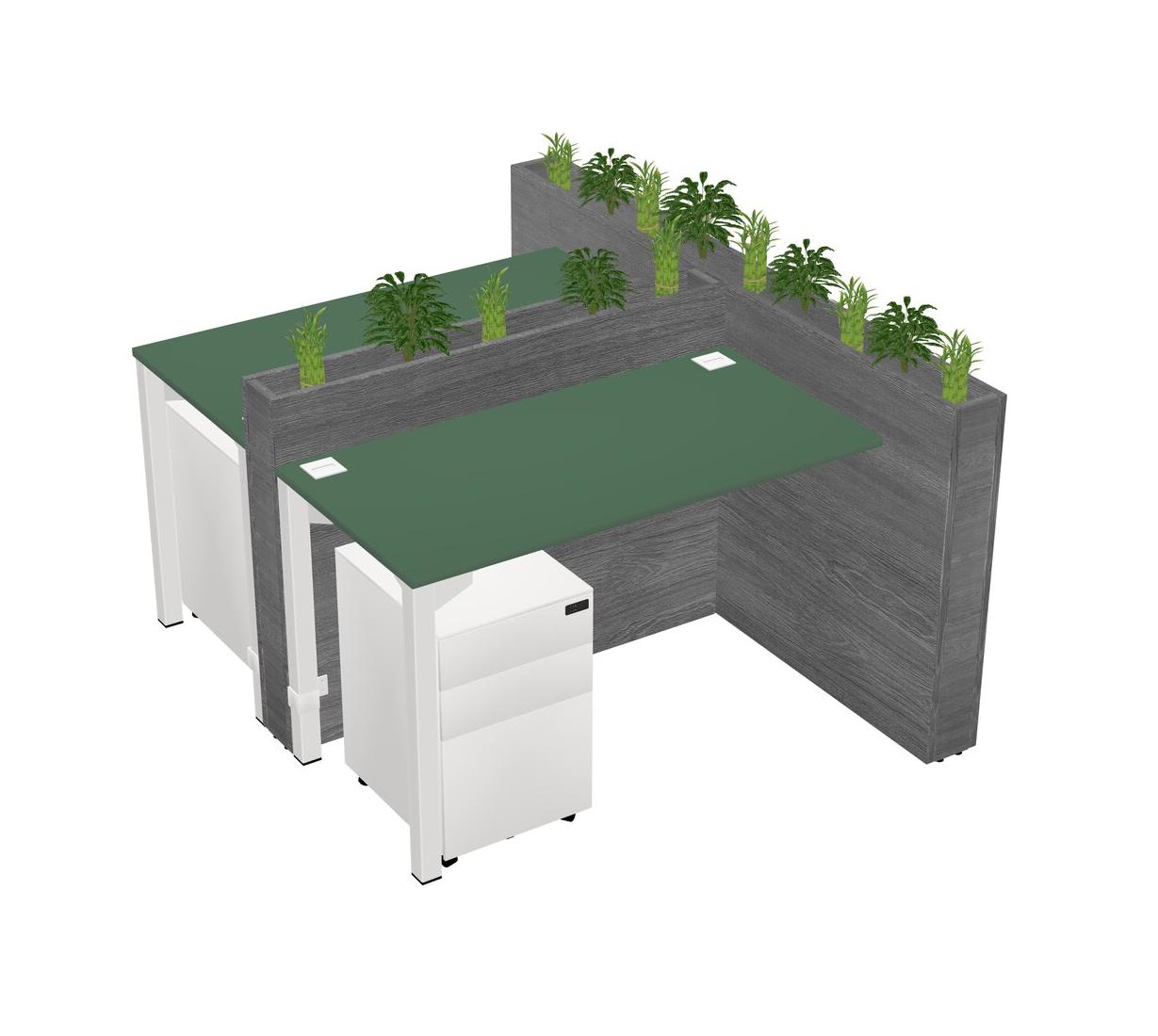 Green Rectangular Shared Office Desk System Metal Mobile Drawers (Pots & Plants Sold Separately)