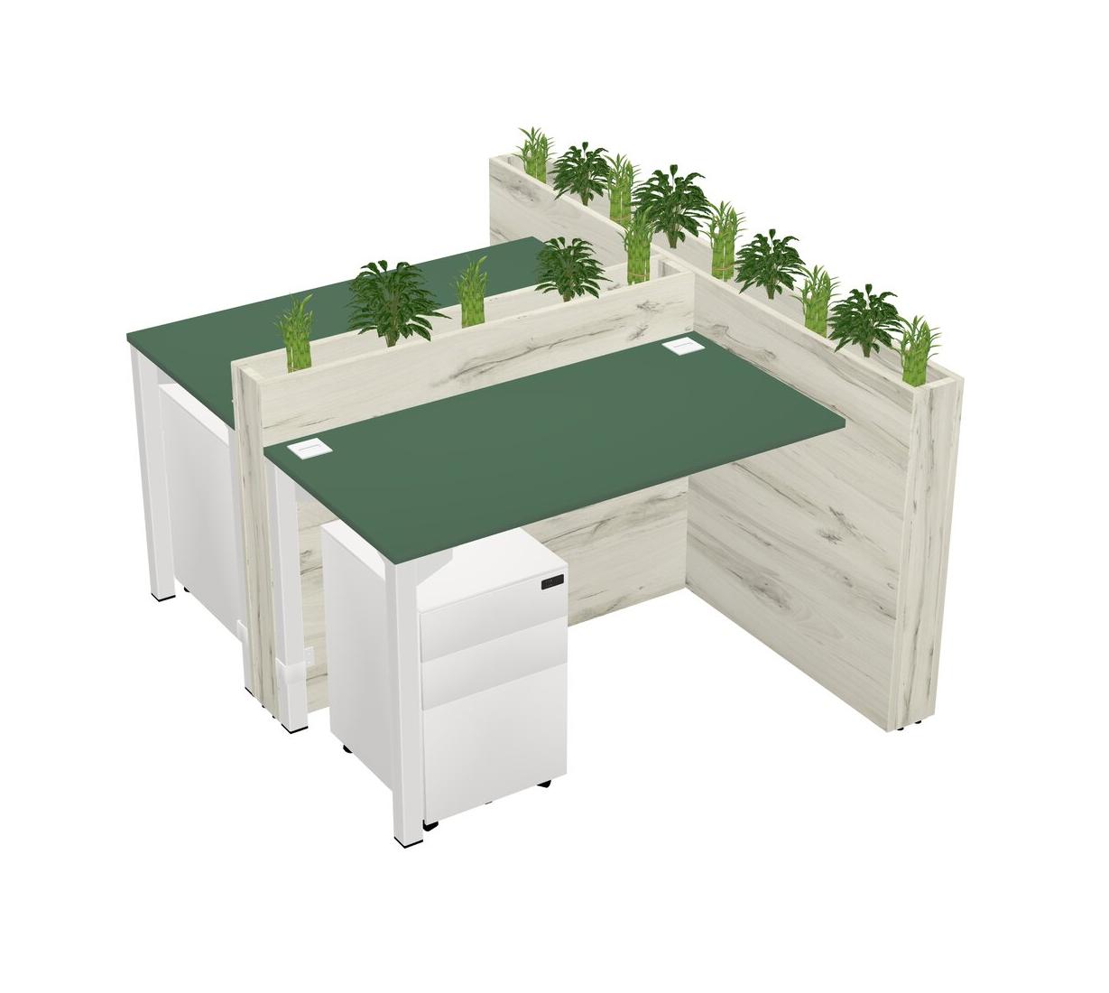 Green Rectangular Shared Office Desk System Metal Mobile Drawers (Pots & Plants Sold Separately)