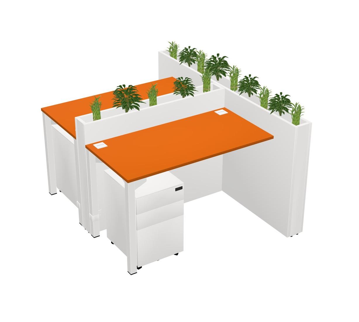 Orange Rectangular Shared Office Desk System Metal Mobile Drawers (Pots & Plants Sold Separately)