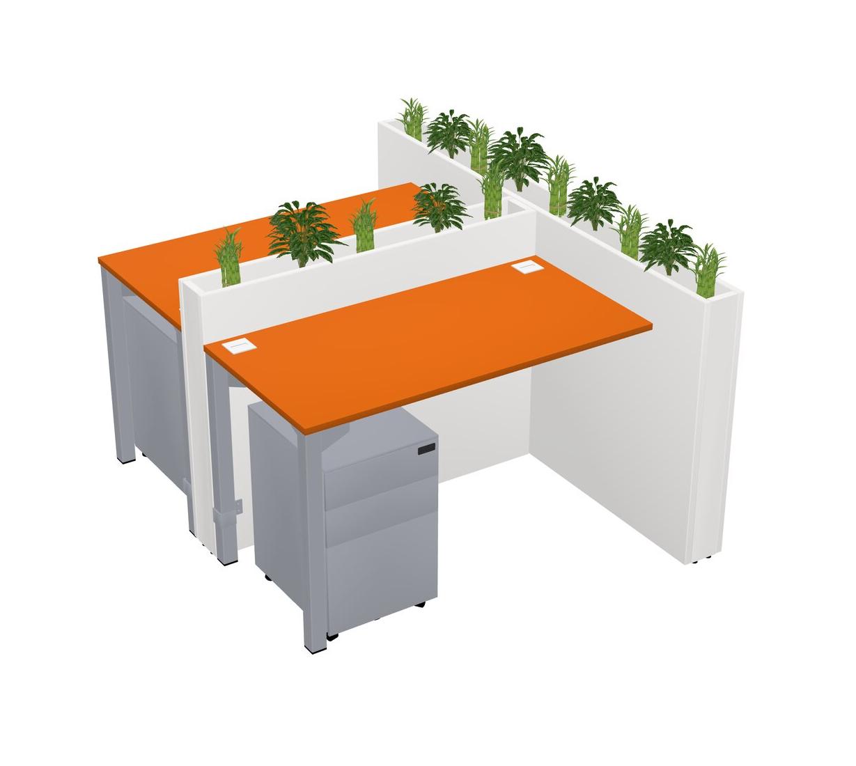 Orange Rectangular Shared Office Desk System Metal Mobile Drawers (Pots & Plants Sold Separately)
