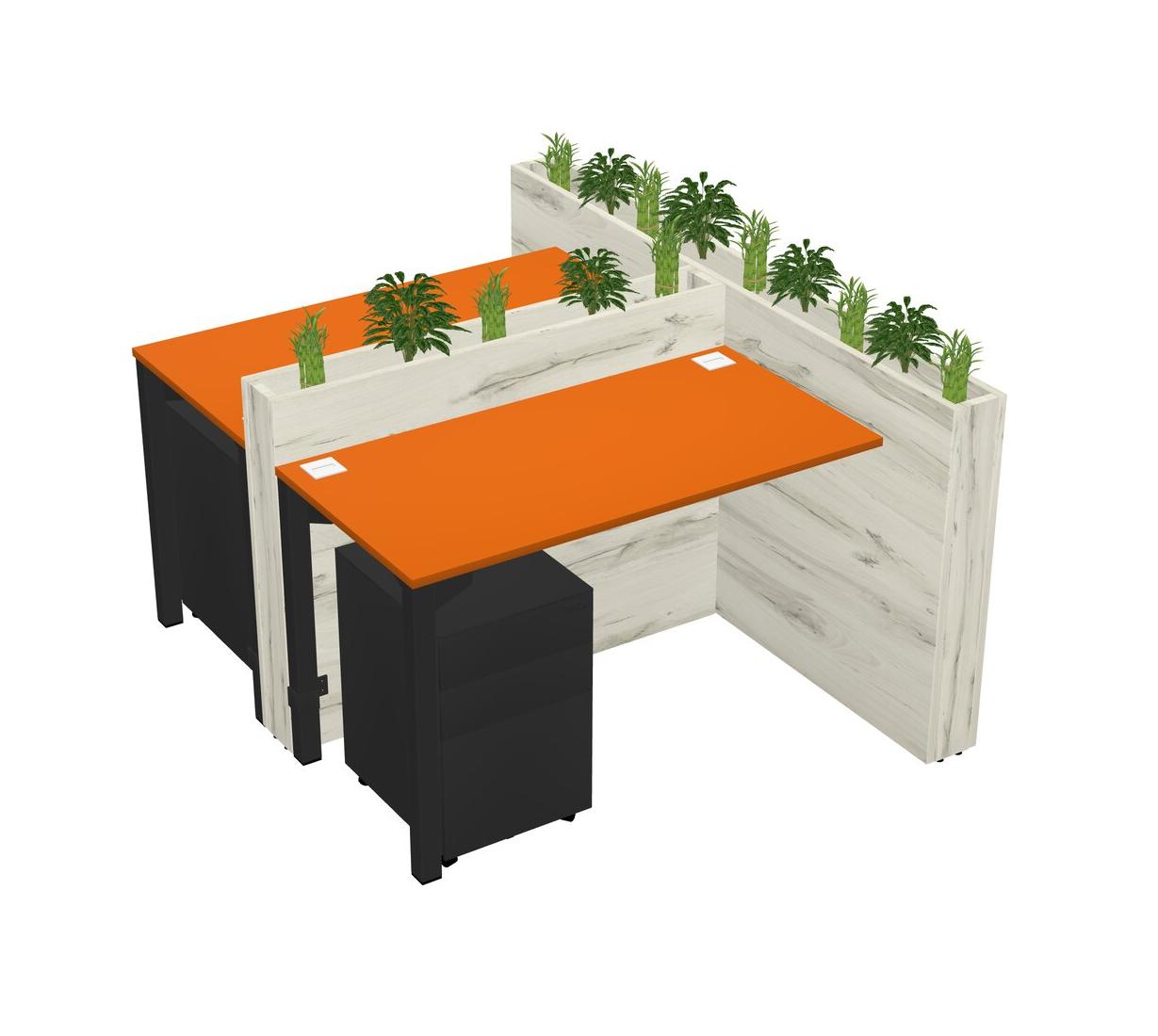 Orange Rectangular Shared Office Desk System Metal Mobile Drawers (Pots & Plants Sold Separately)