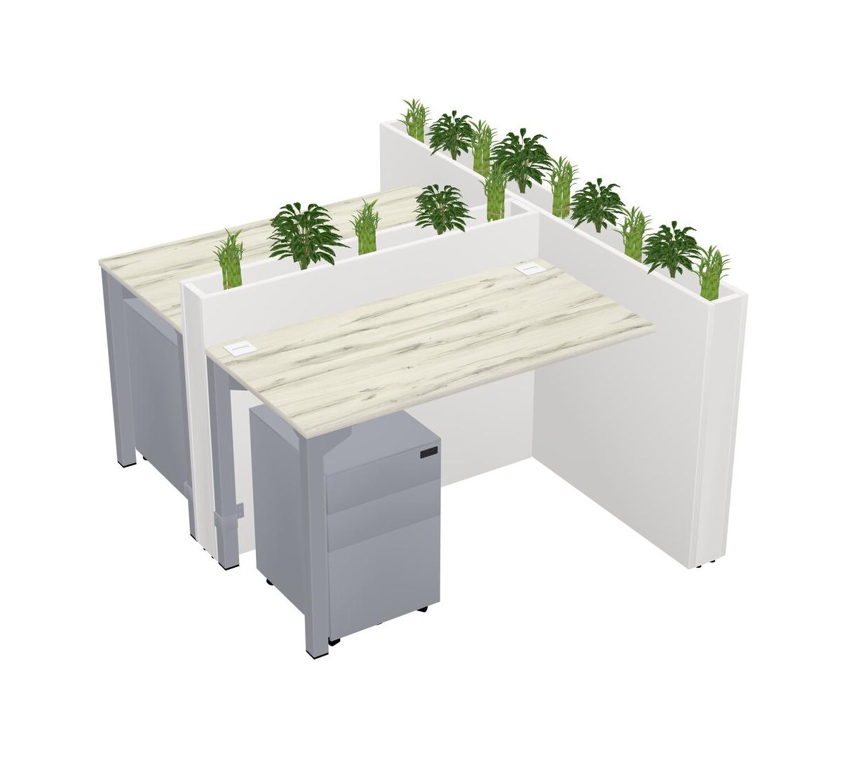 Heinne Holz Rectangular Shared Office Desk System Metal Mobile Drawers (Pots & Plants Sold Separately)