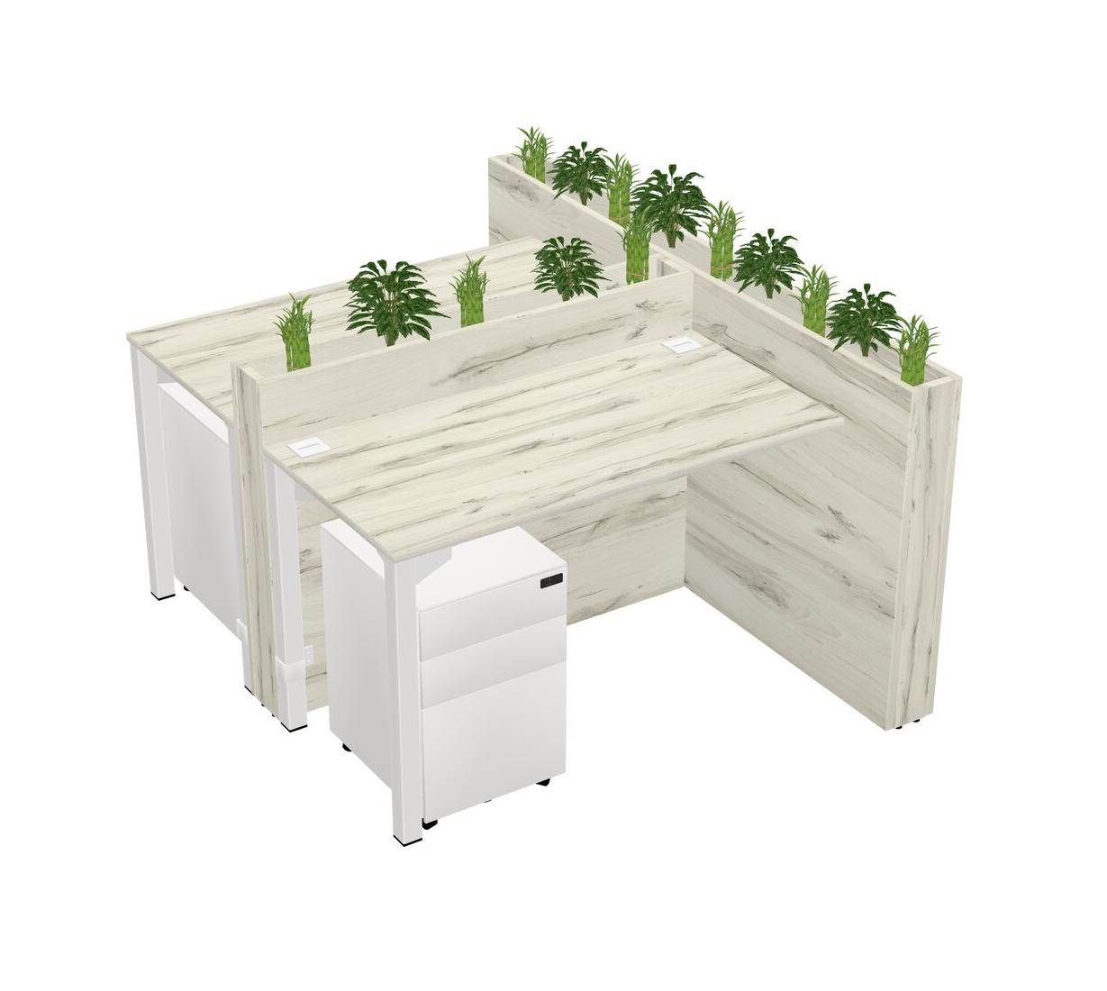 Heinne Holz Rectangular Shared Office Desk System Metal Mobile Drawers (Pots & Plants Sold Separately)