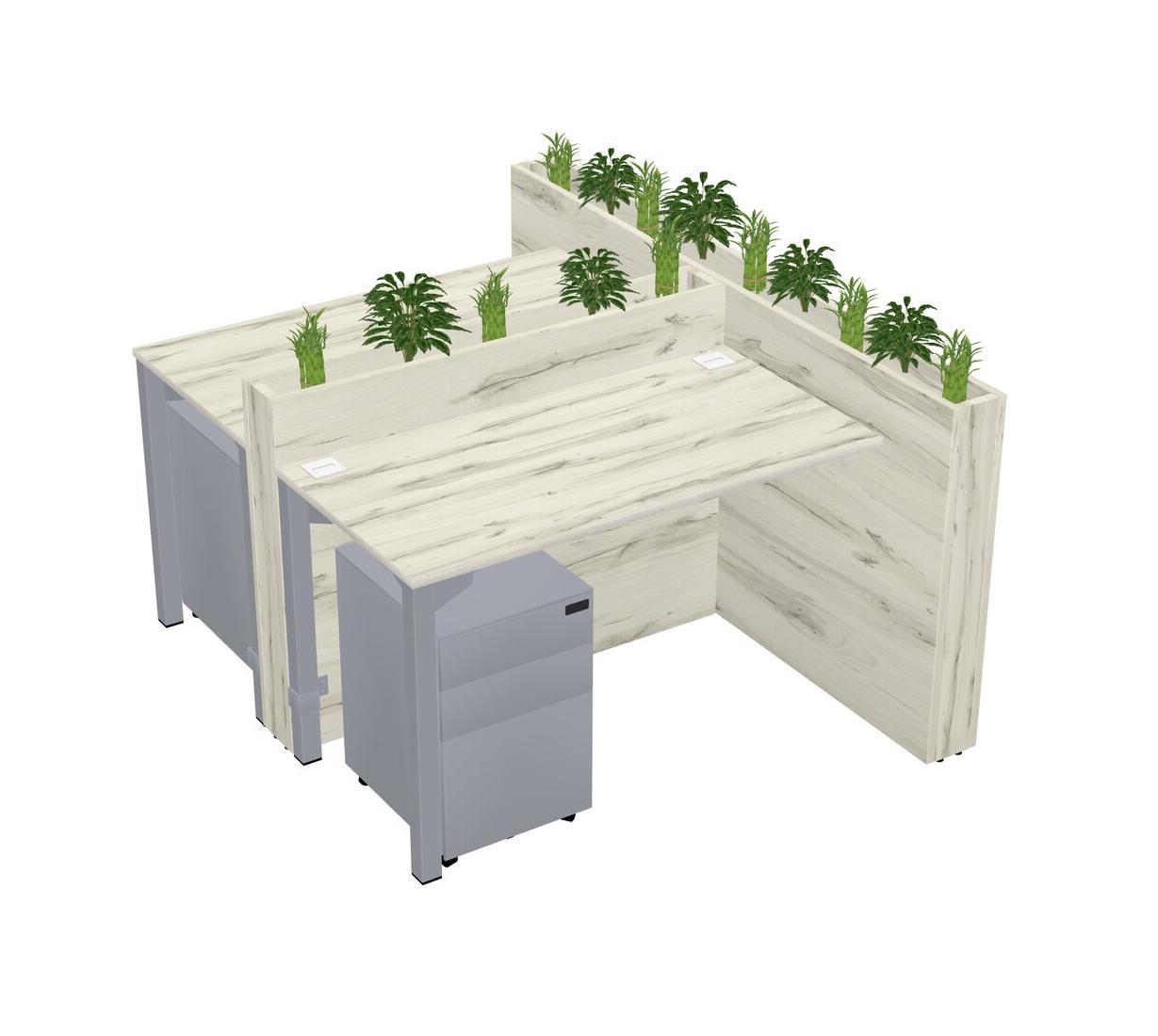 Heinne Holz Rectangular Shared Office Desk System Metal Mobile Drawers (Pots & Plants Sold Separately)