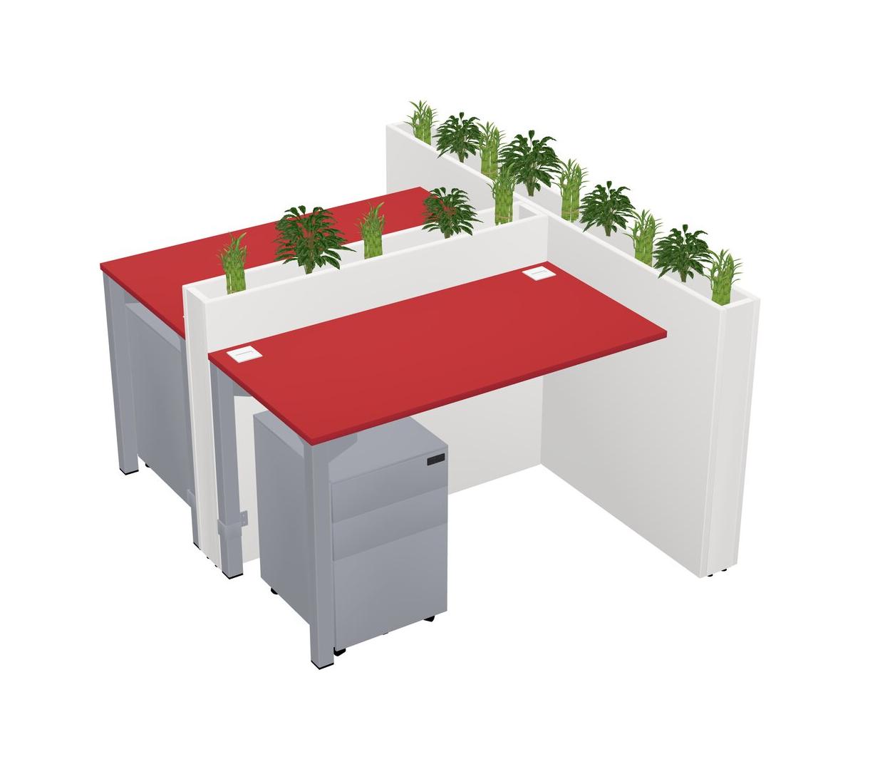 Prism Red Rectangular Shared Office Desk System Metal Mobile Drawers (Pots & Plants Sold Separately)