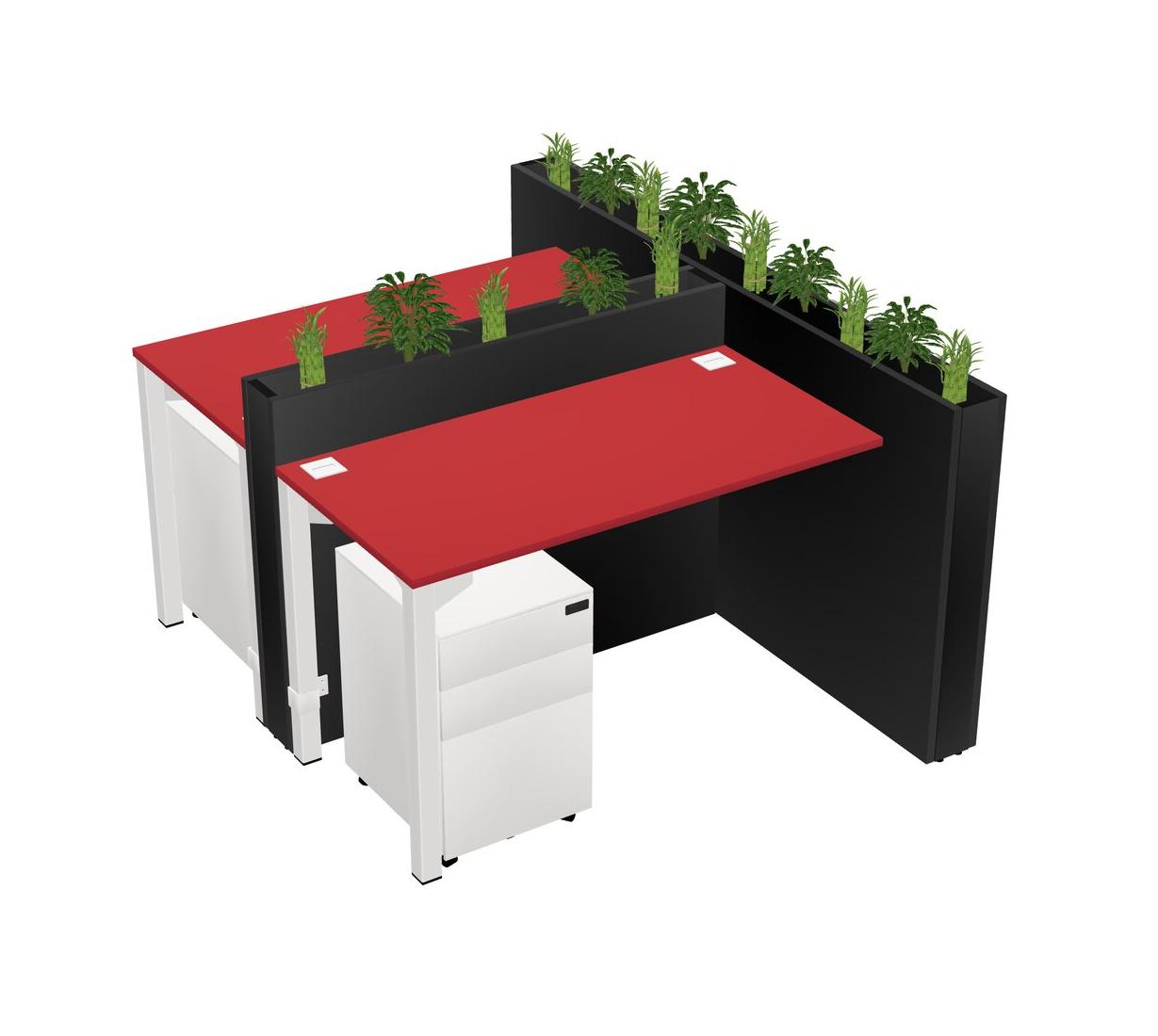 Prism Red Rectangular Shared Office Desk System Metal Mobile Drawers (Pots & Plants Sold Separately)
