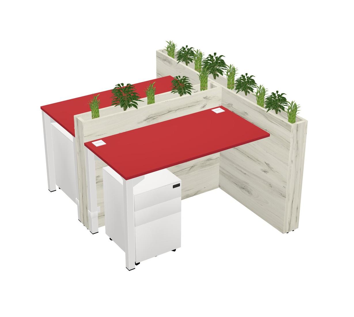 Prism Red Rectangular Shared Office Desk System Metal Mobile Drawers (Pots & Plants Sold Separately)