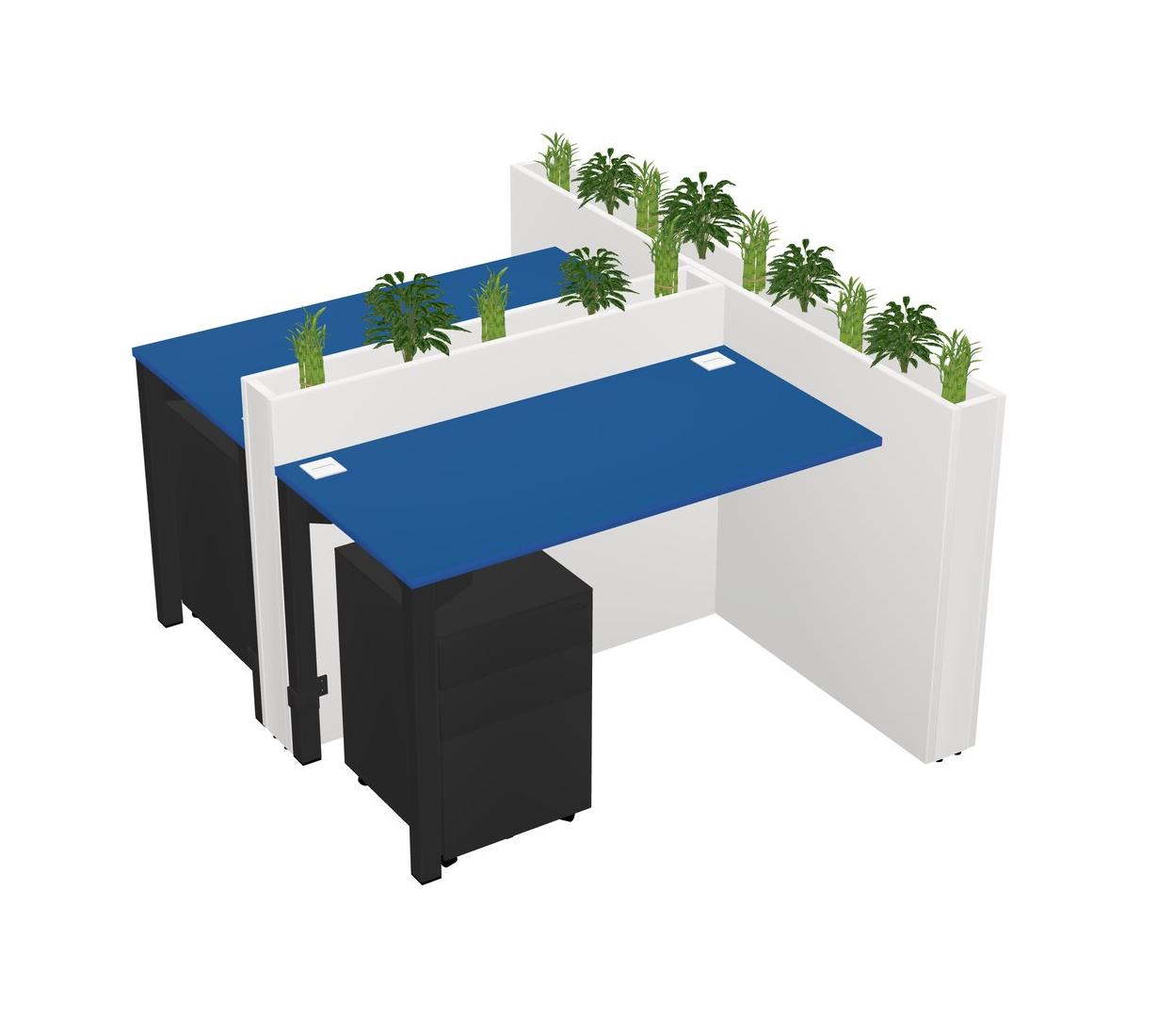 Prism Blue Rectangular Shared Office Desk System Metal Mobile Drawers (Pots & Plants Sold Separately)