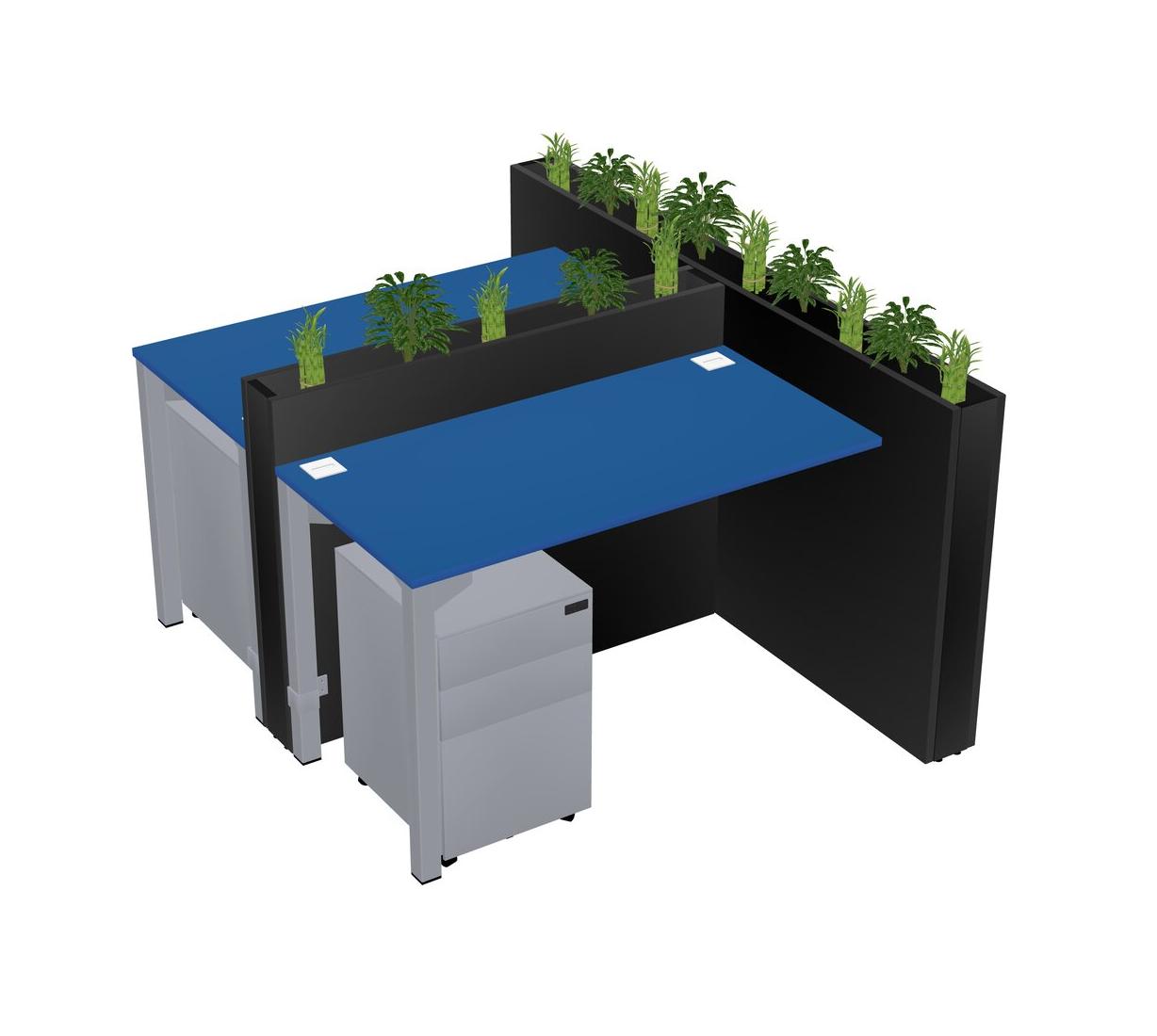 Prism Blue Rectangular Shared Office Desk System Metal Mobile Drawers (Pots & Plants Sold Separately)