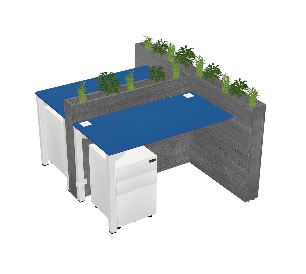 Prism Blue Rectangular Shared Office Desk System Metal Mobile Drawers (Pots & Plants Sold Separately)