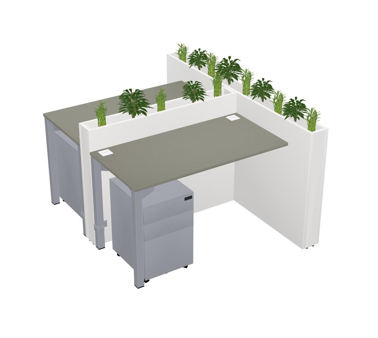 Grey Shadows Rectangular Shared Office Desk System Metal Mobile Drawers (Pots & Plants Sold Separately)
