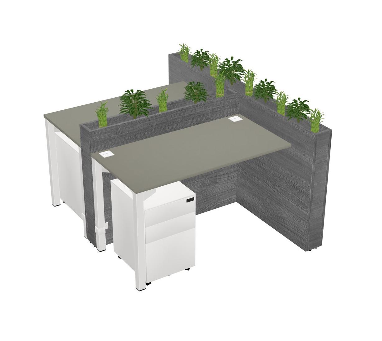Grey Shadows Rectangular Shared Office Desk System Metal Mobile Drawers (Pots & Plants Sold Separately)